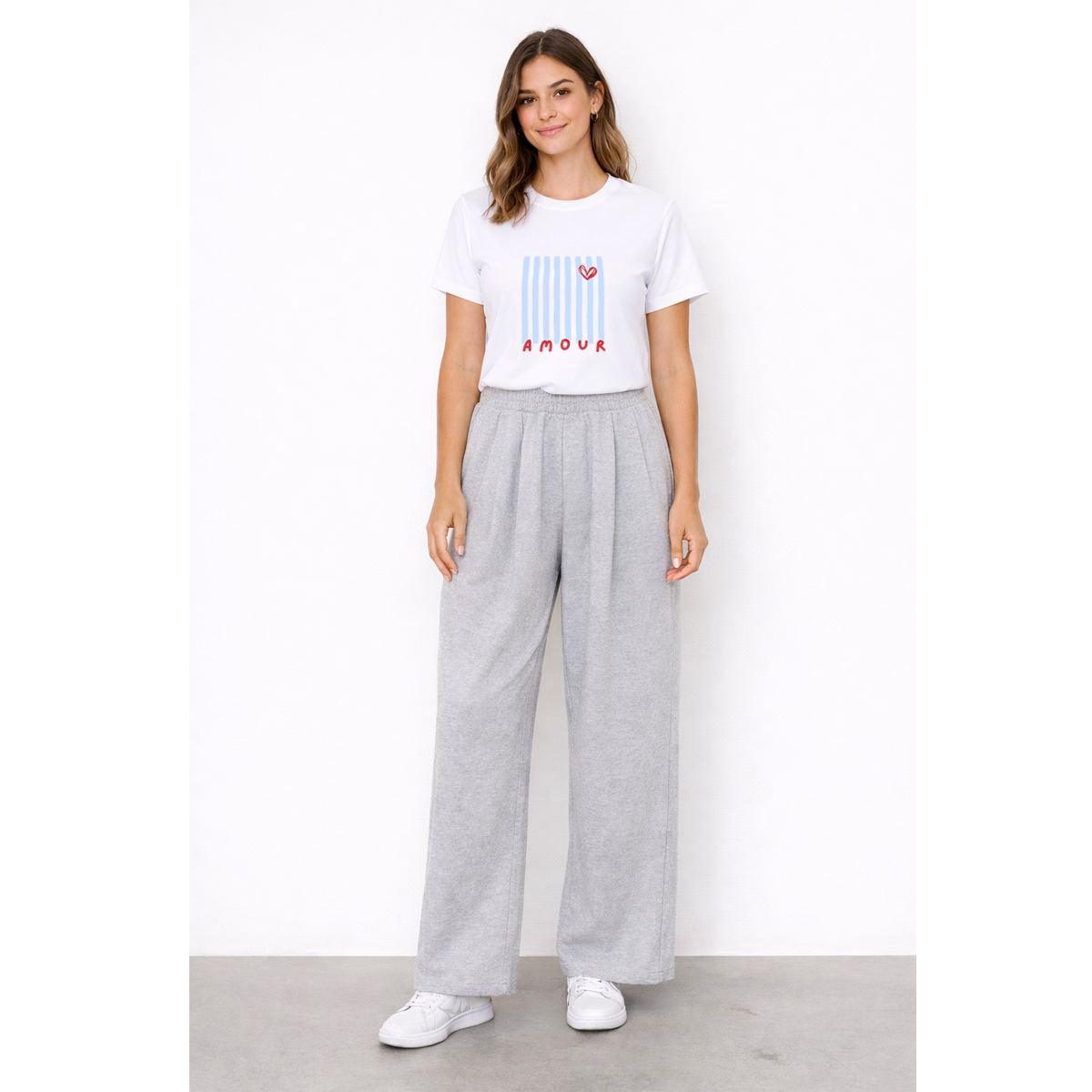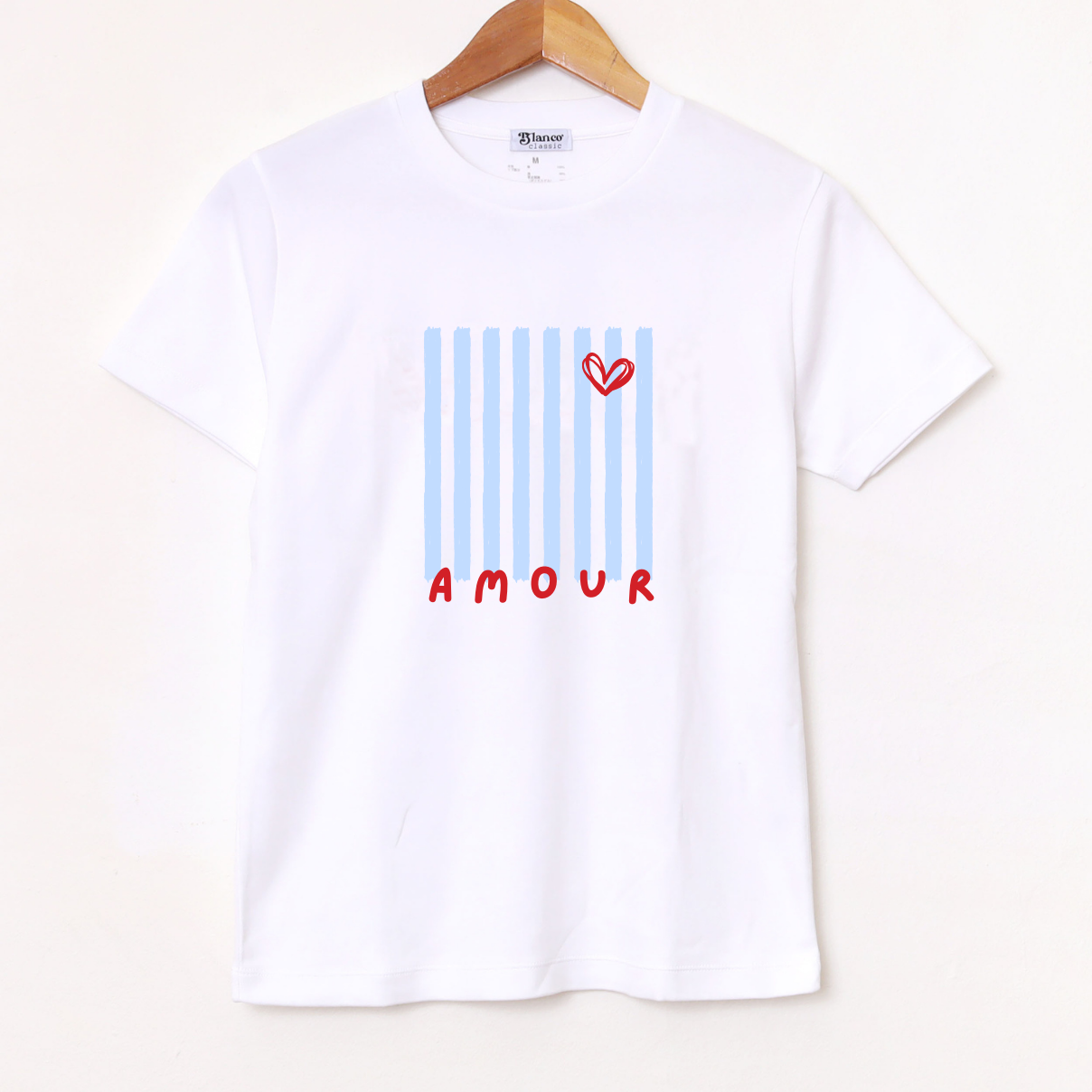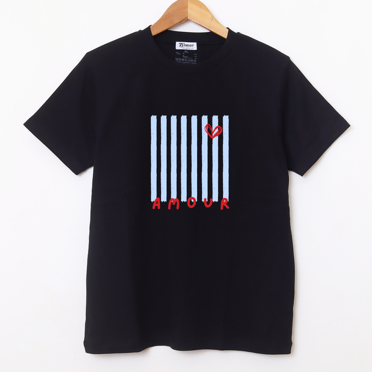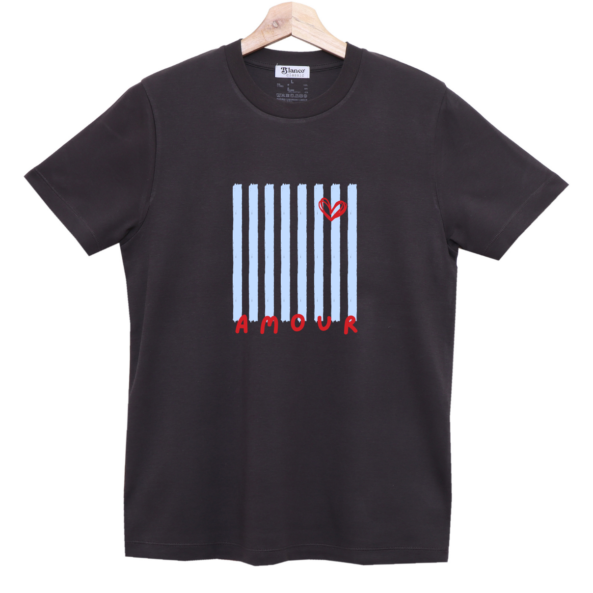 Remera de algodón con estampa que representa un diseño gráfico de rayas y un corazón. Calce regular . Ideal para un look casual, relajado y con un toque distintivo.
